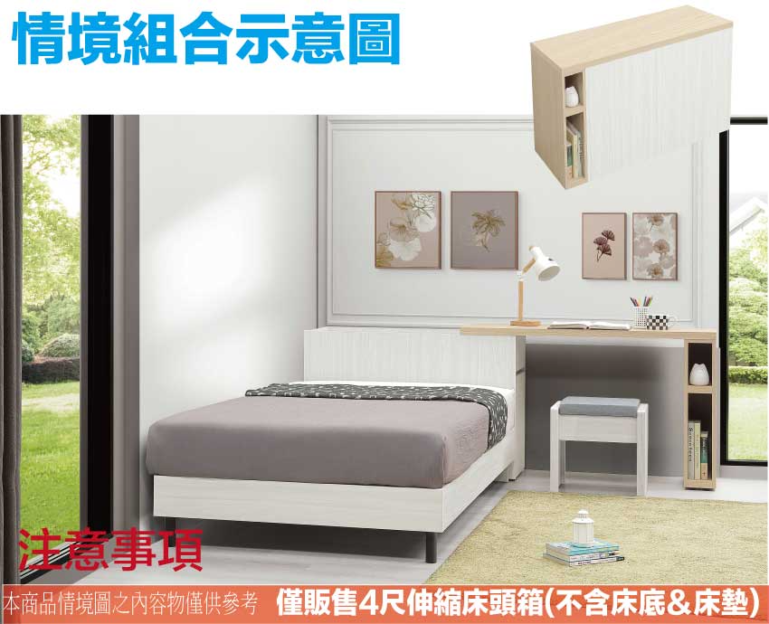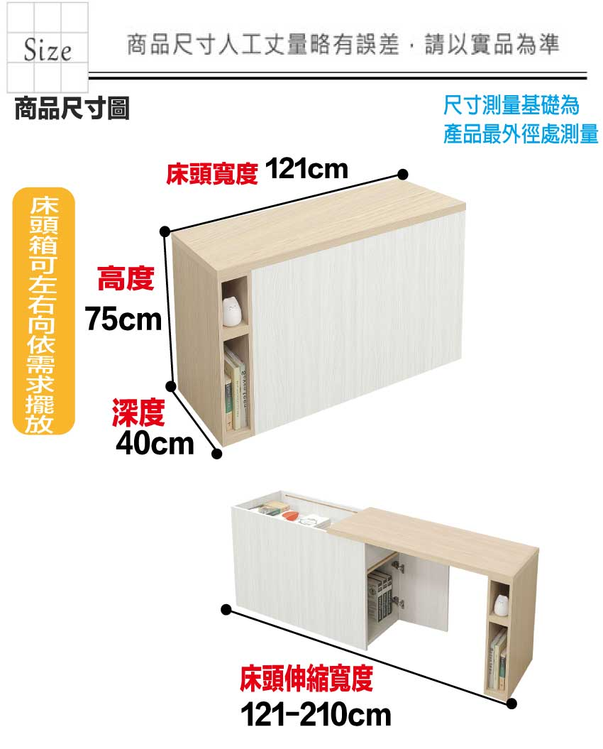 - ◆產品名稱:【綠家居】哈伊4尺可伸縮床頭箱/收納櫃