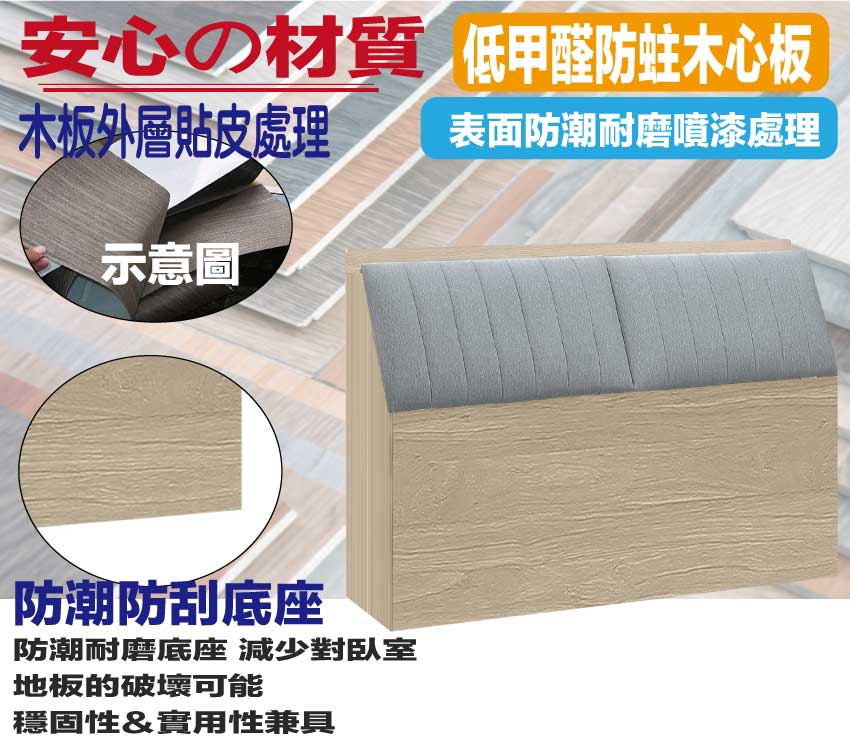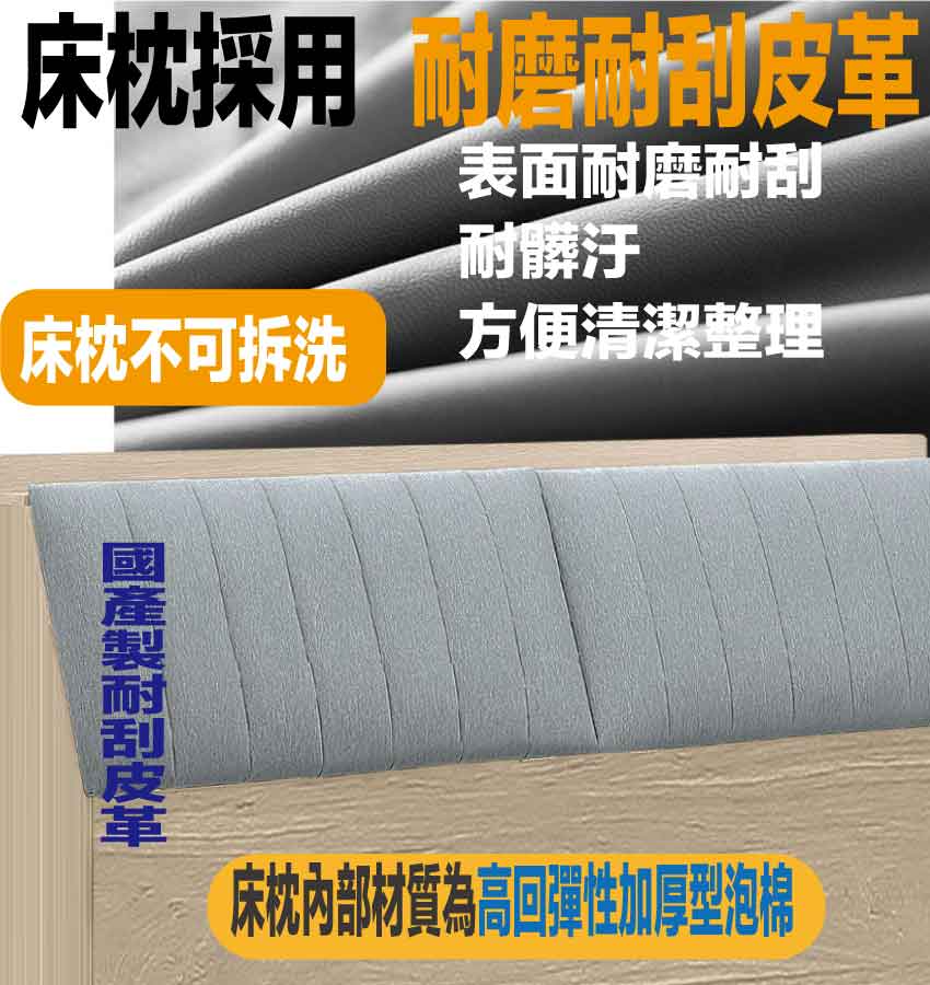 材質:防蛀木心板+防潮耐磨底座+耐磨耐刮皮革+高回彈泡棉