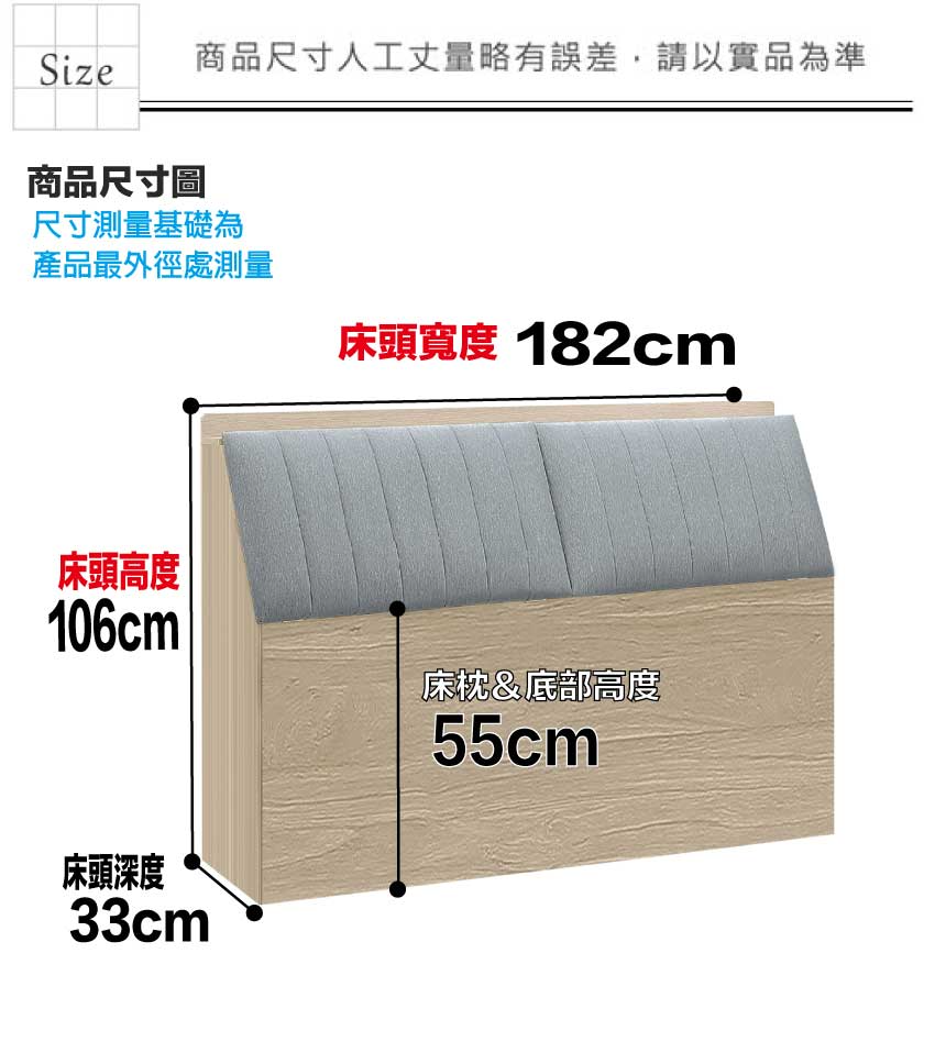 床頭尺寸:(寬)182x(深)33x(高)106/公分