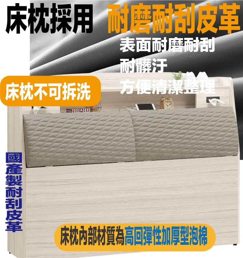 - ◆產品名稱:【綠家居】奧斯巴5尺雙人耐刮皮夜燈床頭箱(不含床底+不含床墊)