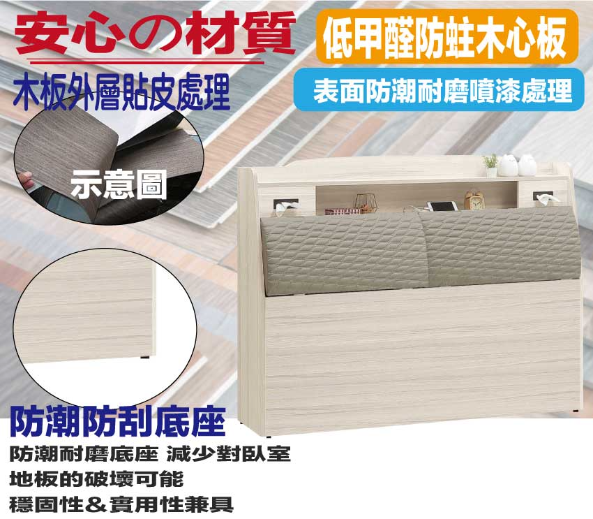 材質:防蛀木心板+防潮耐磨底座+耐磨耐刮皮革+高回彈泡棉