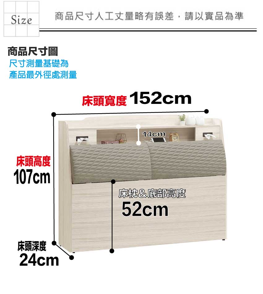 床頭尺寸:(寬)152x(深)24x(高)107/公分