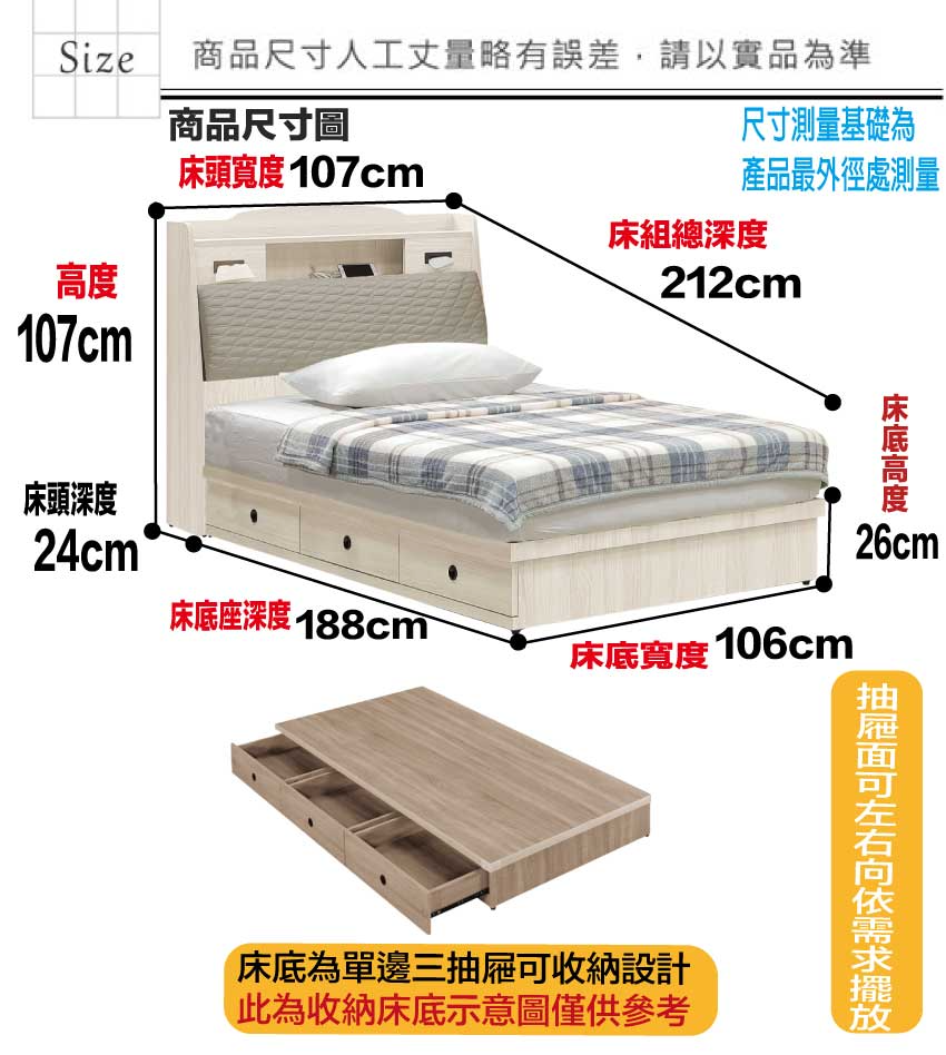 床頭尺寸:(寬)107x(深)24x(高)107/公分