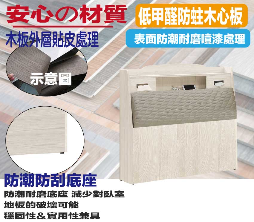 材質:防蛀木心板+防潮耐磨底座+耐磨耐刮皮革+高回彈泡棉