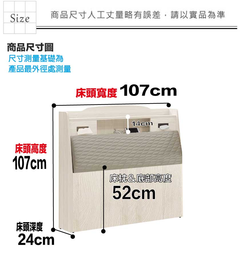 床頭尺寸:(寬)107x(深)24x(高)107/公分