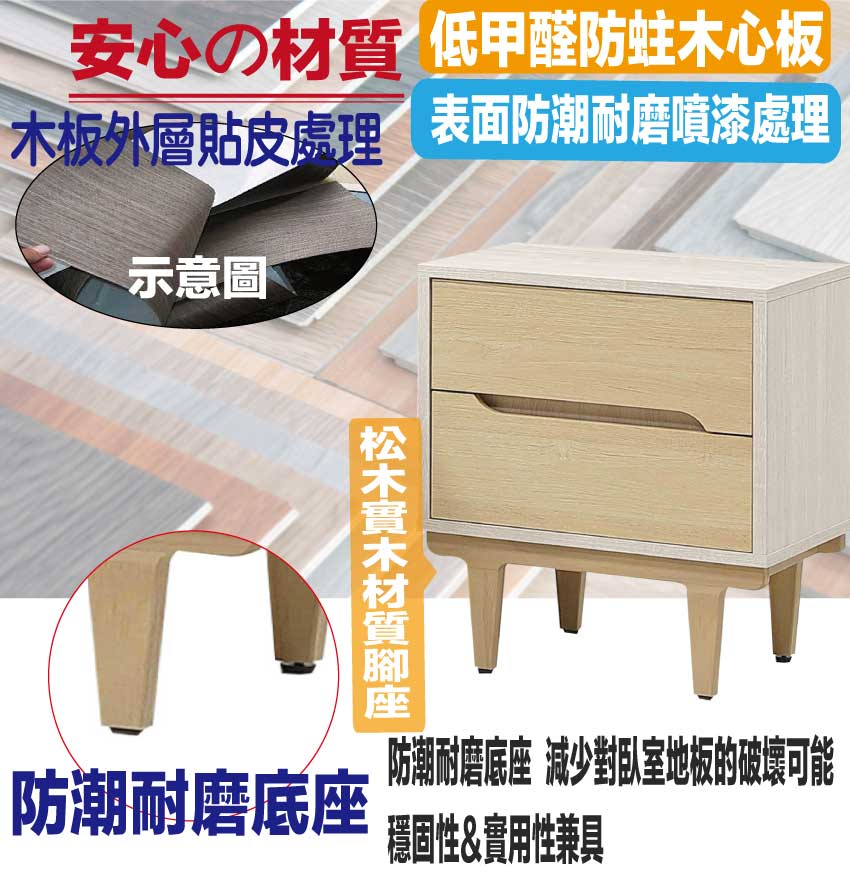 採用防蛀木心板+防潮耐磨底座+五金滑軌結構+松木實木直立腳座等安心材質製造