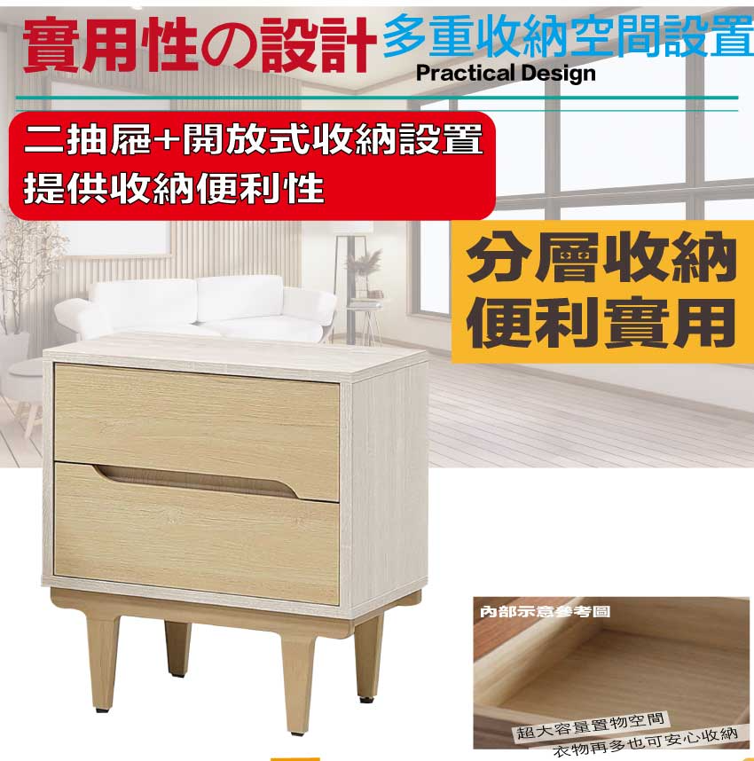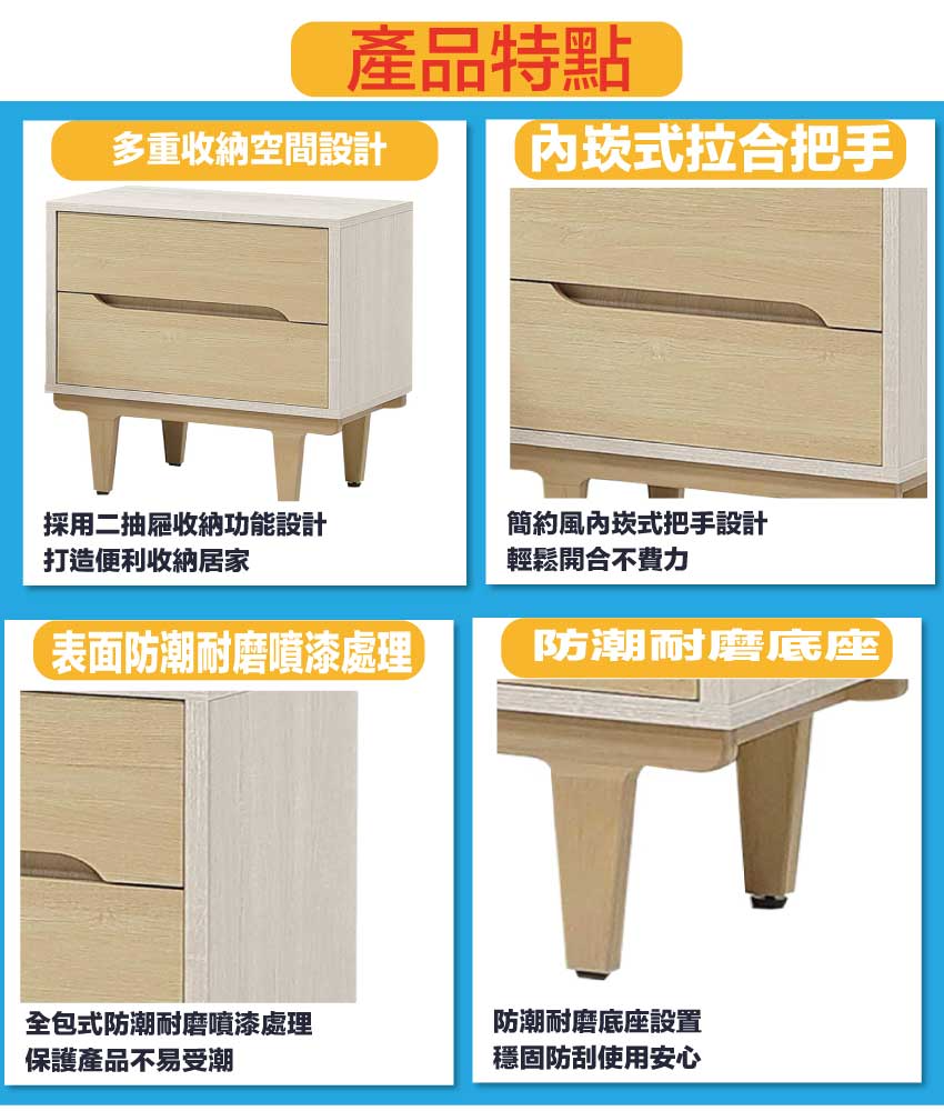 - ◆產品名稱:【綠家居】菲可1.6尺二抽雙色床頭櫃