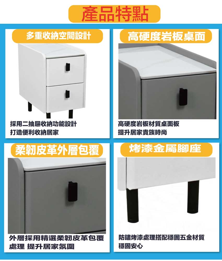 - ◆產品名稱:【綠家居】奇娜1尺岩板皮革二抽床頭櫃(二色可選)