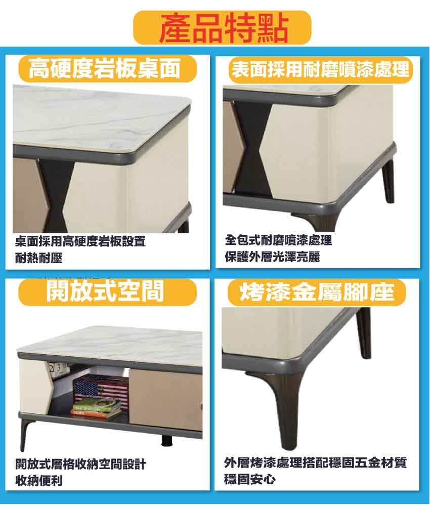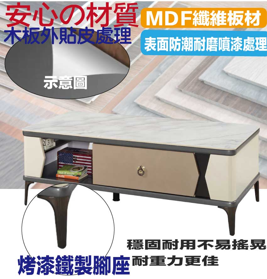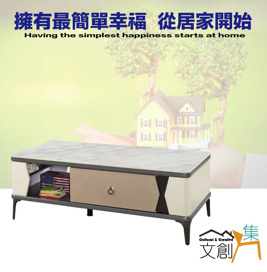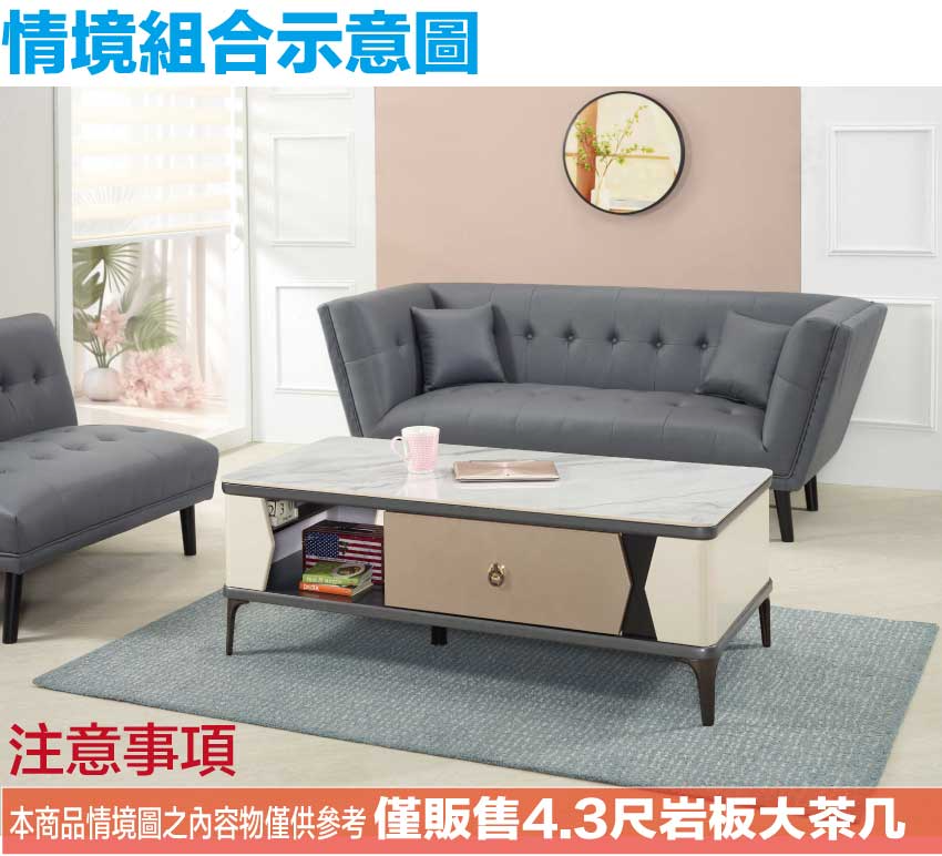 - ◆產品名稱:【文創集】庫克4.3尺岩板二抽大茶几