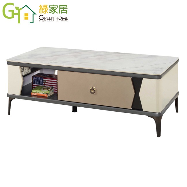 【綠家居】庫克4.3尺岩板二抽大茶几 現代雙色系+安心材質製造,使用放心+搭配居家更便利,採用防潮MDF板+烤漆鐵製腳座+五金滑軌結構+8mm高硬度岩板桌面板等安心材質製造 ,外層採用防潮耐磨噴漆處理搭配採用雙面開合共二抽屜+開放層格等收納空間設計,全由專人配送到家,專業安心服務,替你省下更多時間!
