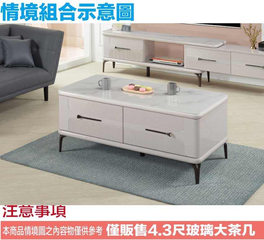 - ◆產品名稱:【綠家居】帕亞4.3尺玻璃四抽大茶几