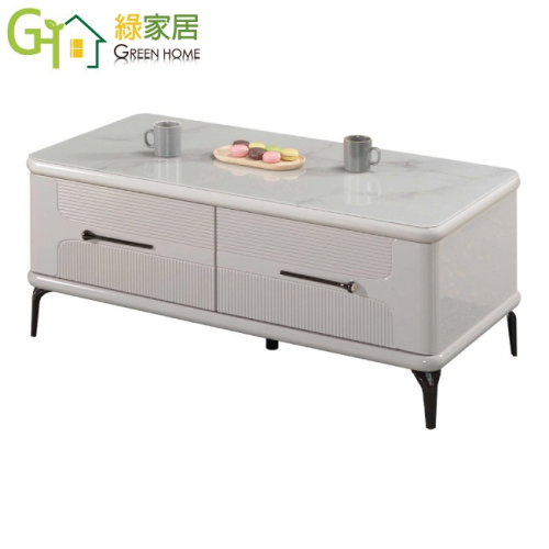【綠家居】帕亞4.3尺玻璃四抽大茶几 現代雙色系+安心材質製造,使用放心+搭配居家更便利,採用防潮MDF板+烤漆鐵製腳座+五金滑軌結構+3mm仿大理石紋玻璃桌面板等安心材質製造 ,外層採用防潮耐磨噴漆處理搭配採用雙面開合共四抽屜+開放桌面等收納空間設計,全由專人配送到家,專業安心服務,替你省下更多時間!