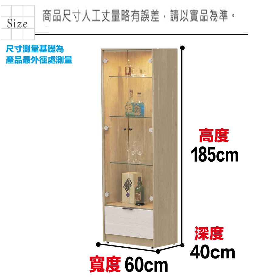 - ◆產品名稱:【綠家居】蘿克2尺二門單抽展示櫃(內置LED氛圍燈)