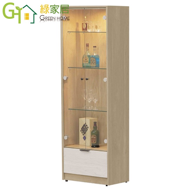 【綠家居】蘿克2尺二門單抽展示櫃(內置LED氛圍燈) 現代雙色系+安心材質製造,使用放心+搭配居家更便利,採用防蛀木心板+防潮耐磨底座+五金滑軌結構+防夾手緩衝門片五金+5mm強化玻璃門片+8mm強化玻璃層板+內置LED氛圍燈等安心材質製造 ,外層採用防潮耐磨噴漆處理搭配採用開門櫃+單抽屜+內開放層格等收納空間設計,全由專人配送到家,專業安心服務,替你省下更多時間!