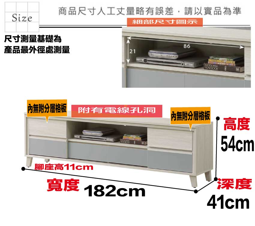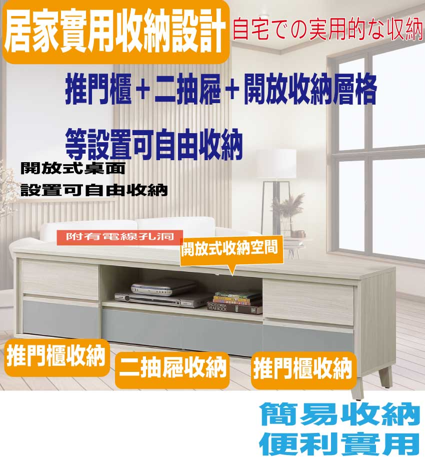 - ◆產品名稱:【綠家居】奇伊雙色6.1尺推門二抽電視櫃