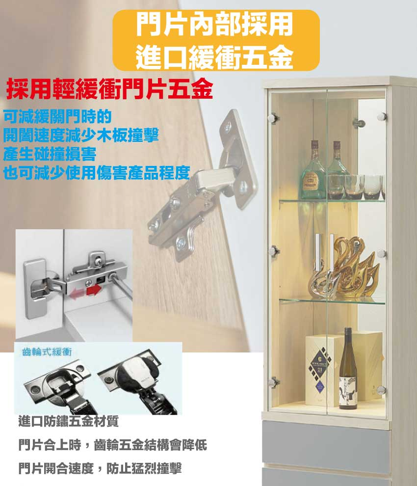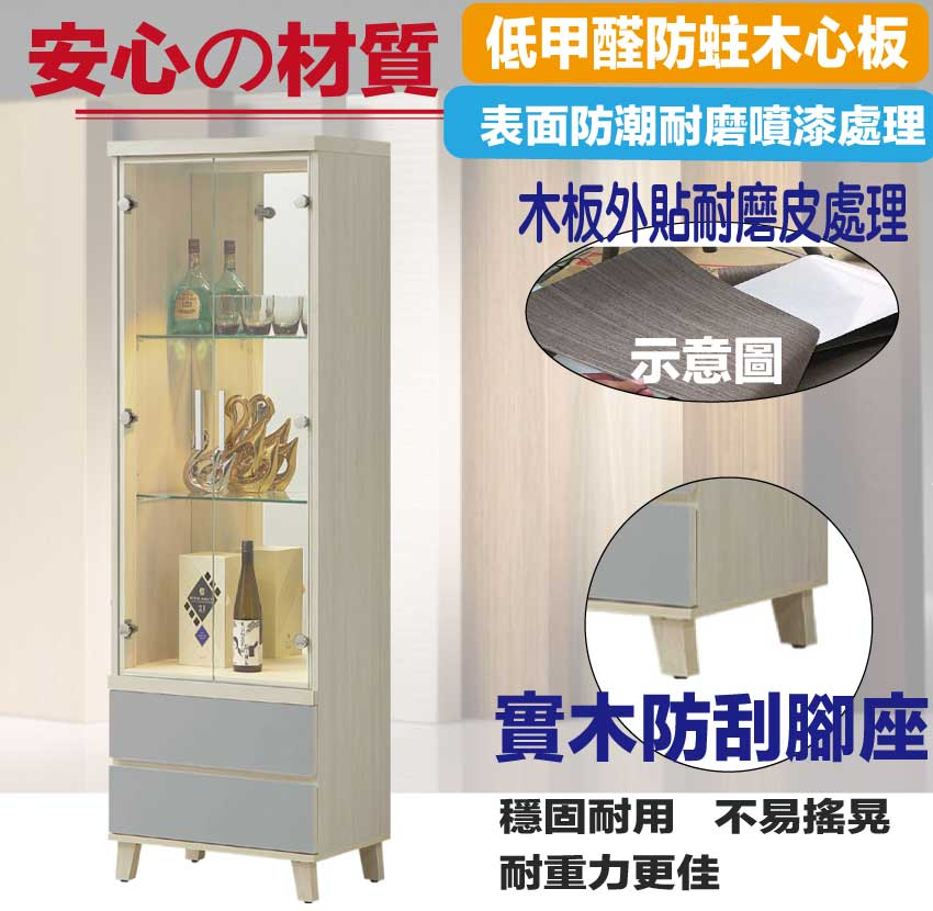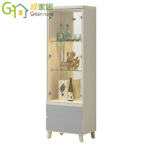 【綠家居】奇伊雙色2尺二門二抽展示櫃(內置LED氛圍燈) 現代雙色系+安心材質製造,使用放心+搭配居家更便利,採用防蛀木心板+防刮實木腳座+五金滑軌結構+防夾手緩衝門片五金+5mm強化玻璃門片+8mm強化玻璃層板+內置LED氛圍燈等安心材質製造 ,外層採用防潮耐磨噴漆處理搭配採用開門櫃+二抽屜+內開放層格等收納空間設計,全由專人配送到家,專業安心服務,替你省下更多時間!