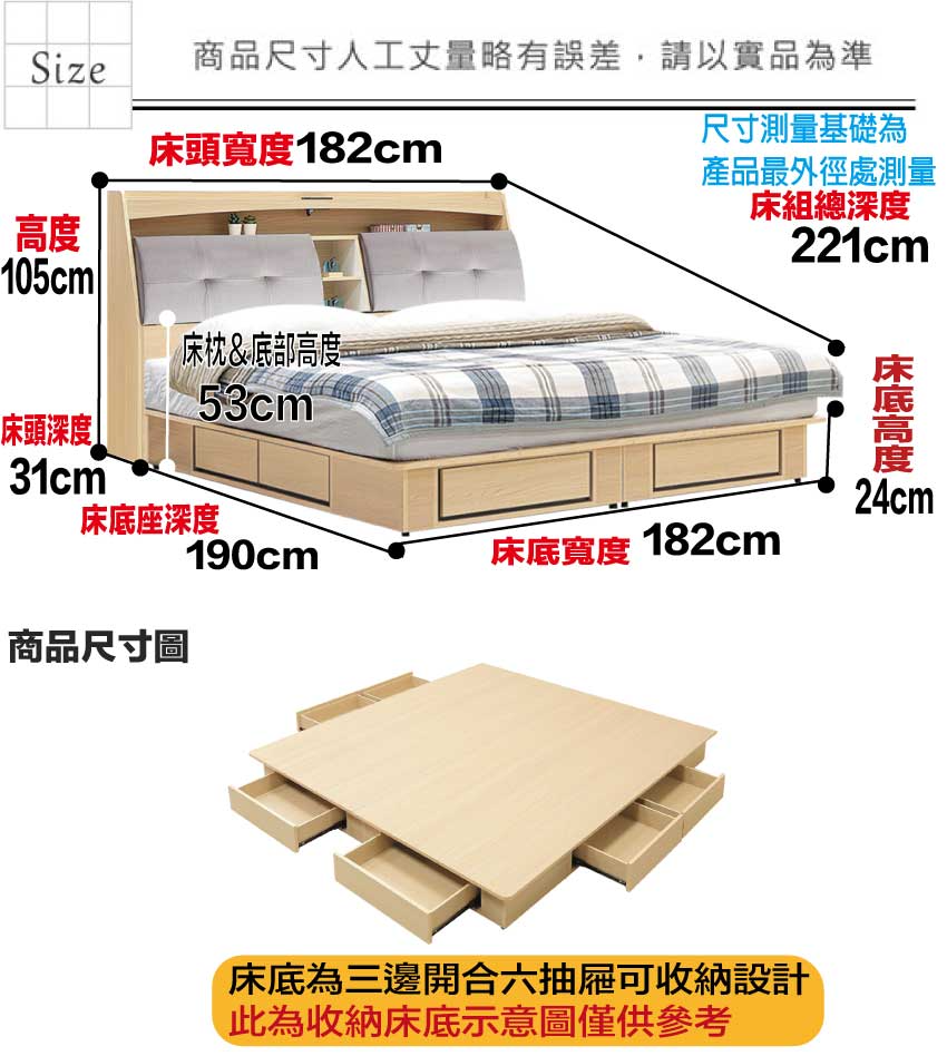 床頭尺寸:(寬)182x(深)31x(高)105/公分