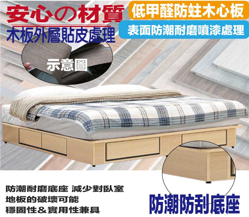 採用防蛀木心板+防潮耐磨底座+六分木床底等安心材質製造