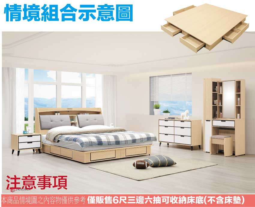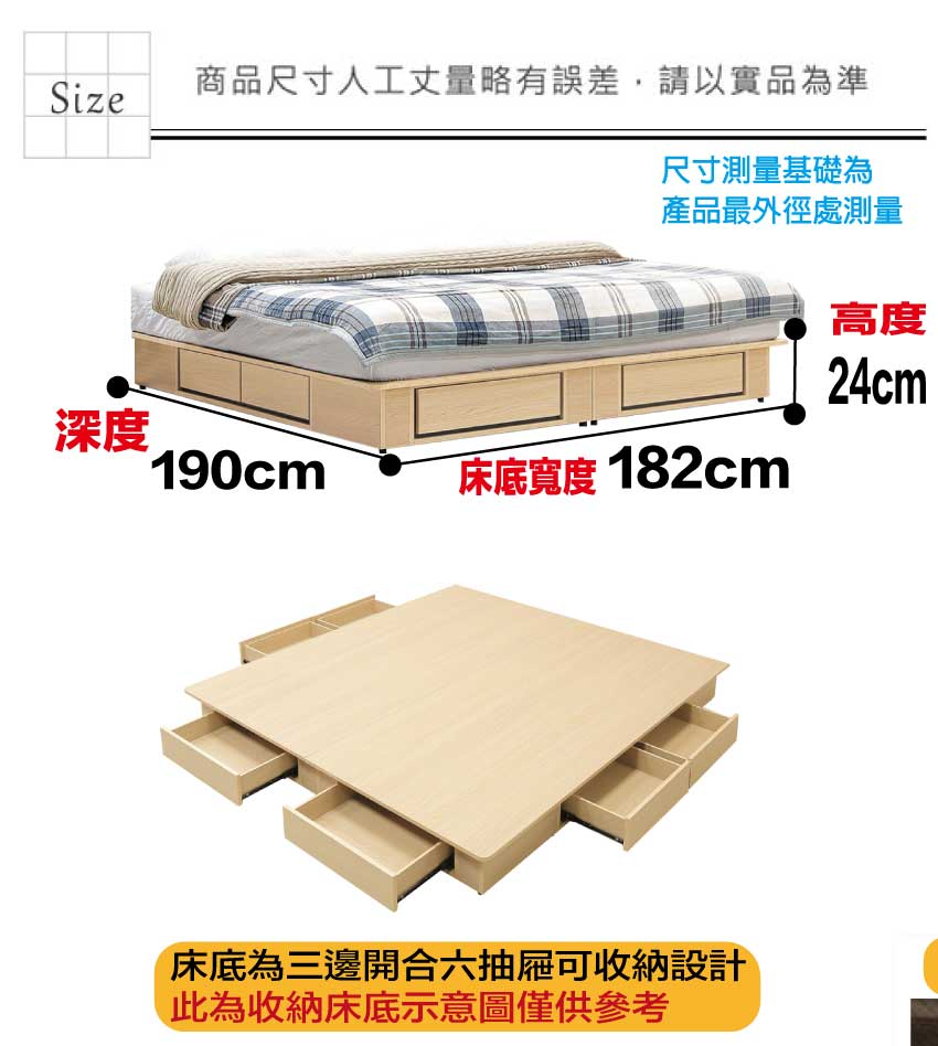 - ◆產品名稱:【綠家居】亞卡利6尺雙人加大六抽床底(不含床墊)
