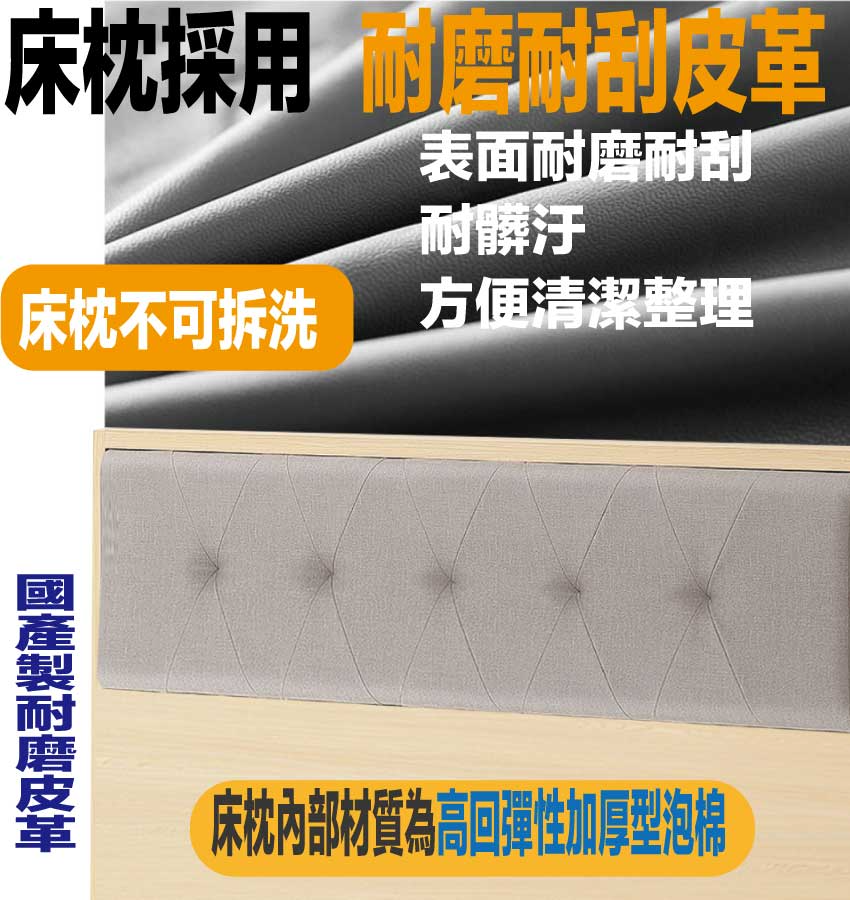 材質:防蛀木心板+防潮耐磨底座+耐磨耐刮皮革+高彈力泡棉