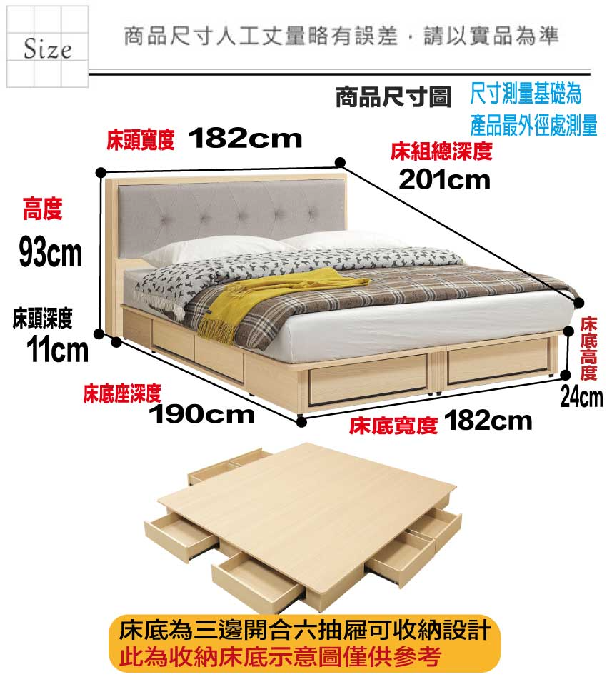床底尺寸:(寬)182x(深)190x(高)24/公分