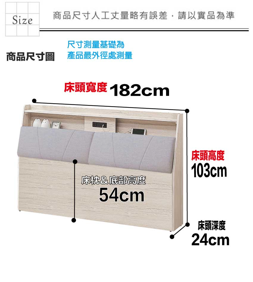 床頭尺寸:(寬)182x(深)24x(高)103/公分