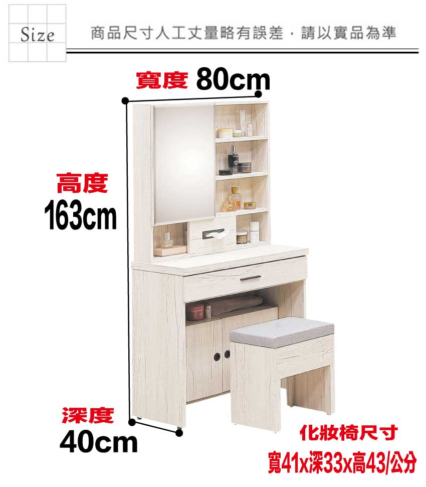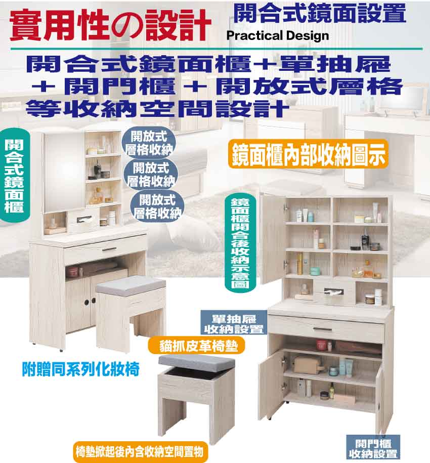 鏡台搭配可掀蓋收納化妝椅凳,滿足您居家空間使用便利性