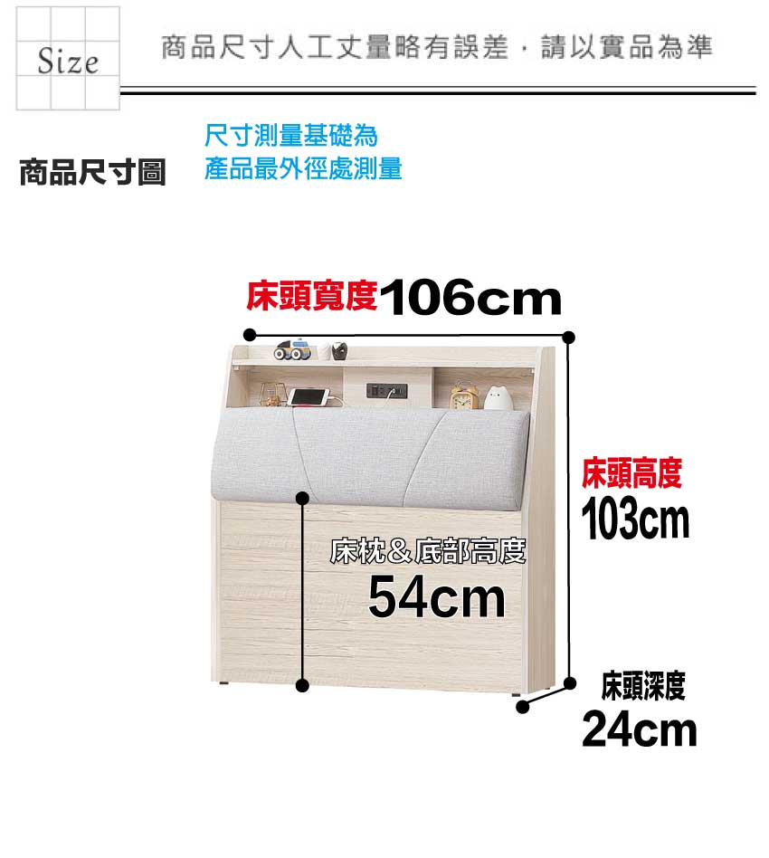 床頭尺寸:(寬)106x(深)24x(高)103/公分