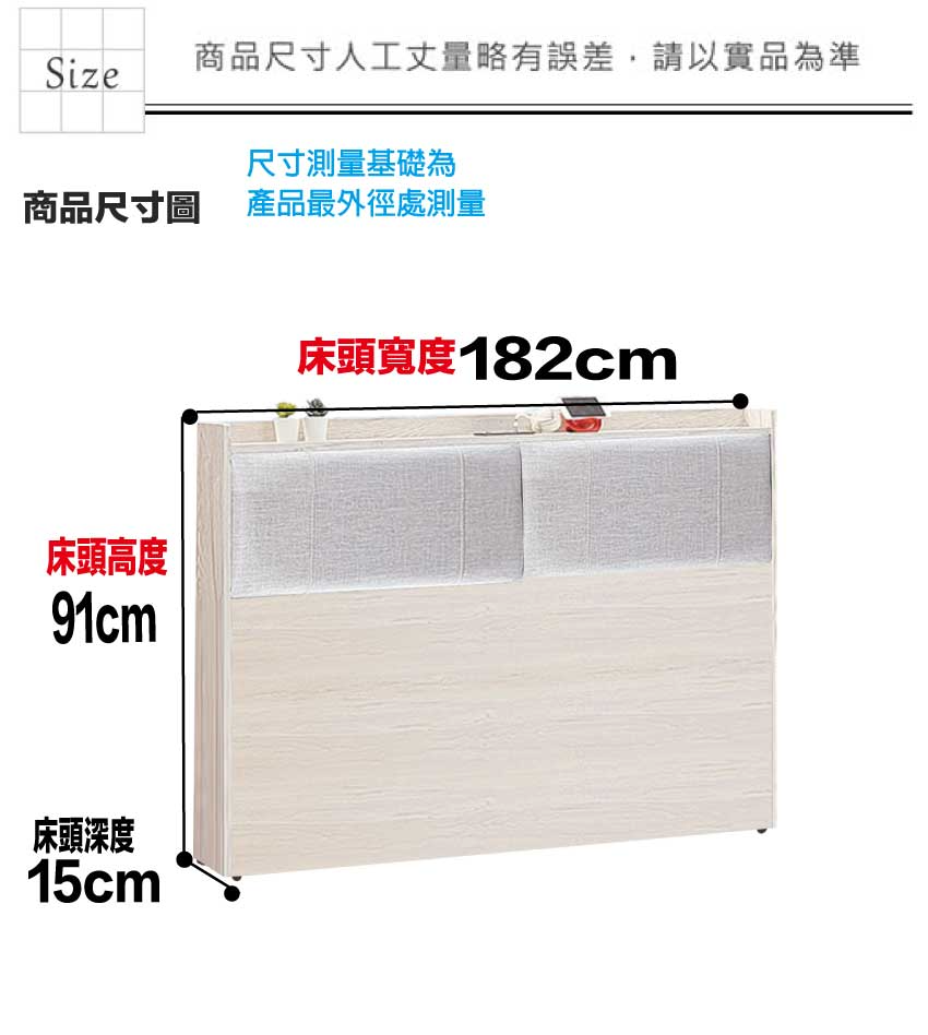 床頭尺寸:(寬)182x(深)15x(高)91/公分