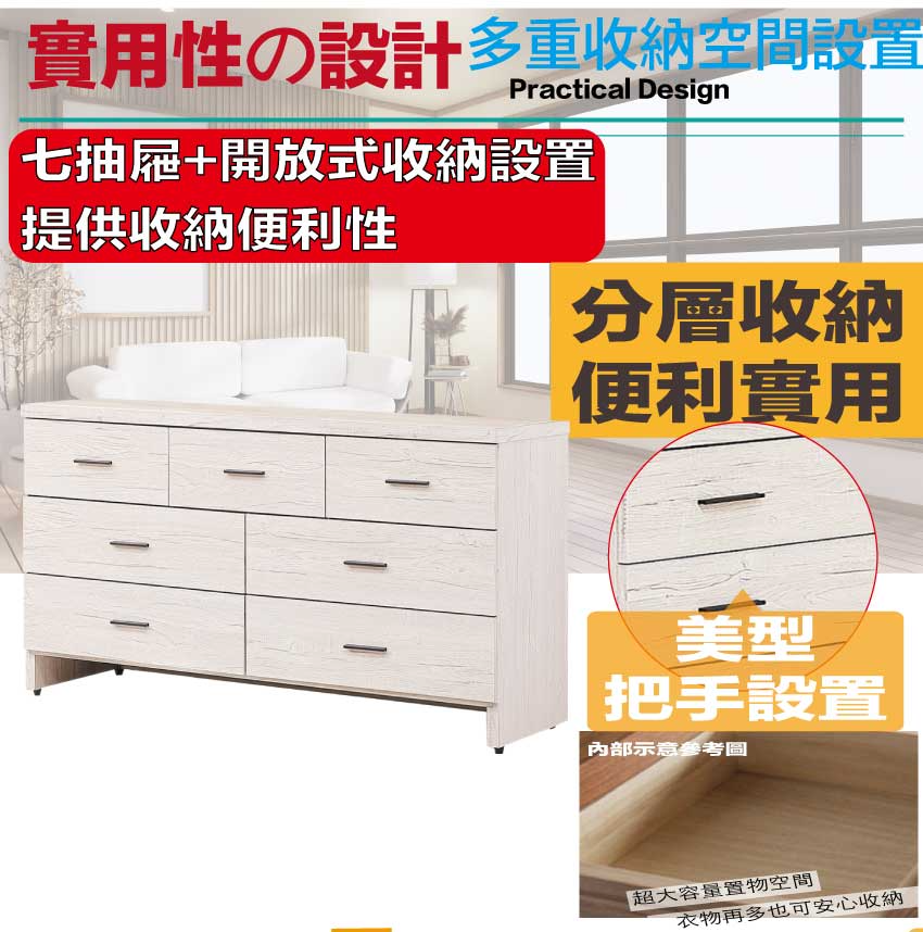 - ◆產品名稱:【綠家居】得卡利5尺七抽斗櫃
