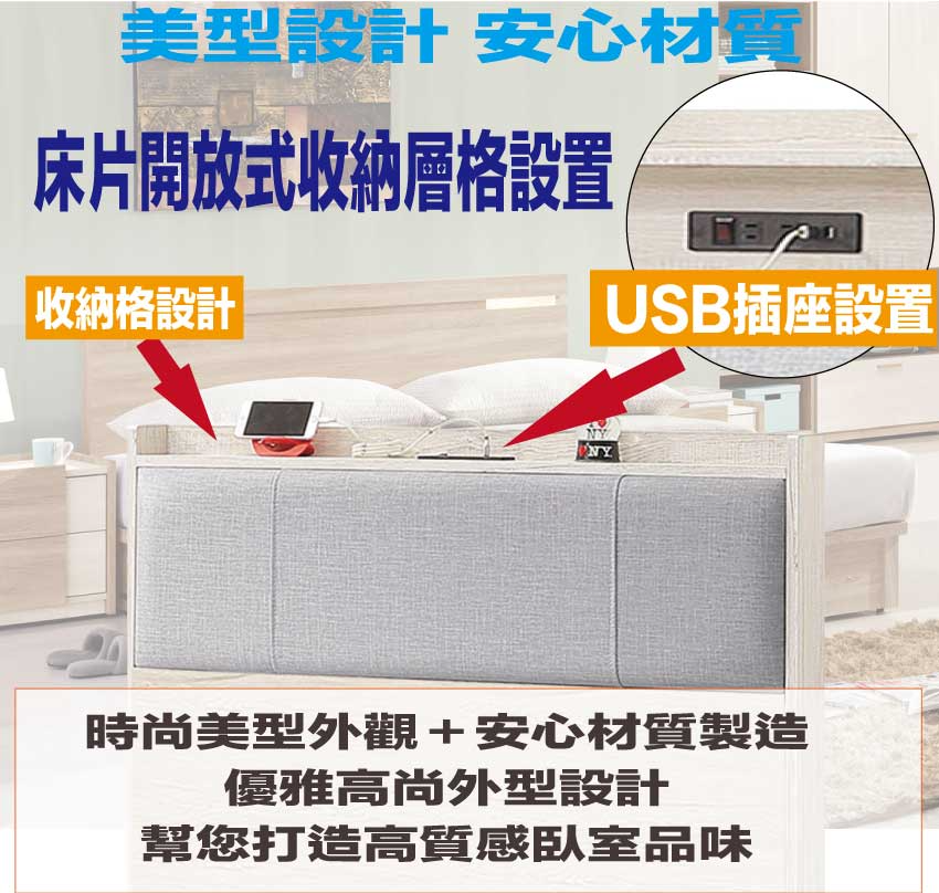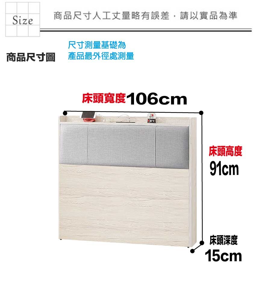 床頭尺寸:(寬)106x(深)15x(高)91/公分