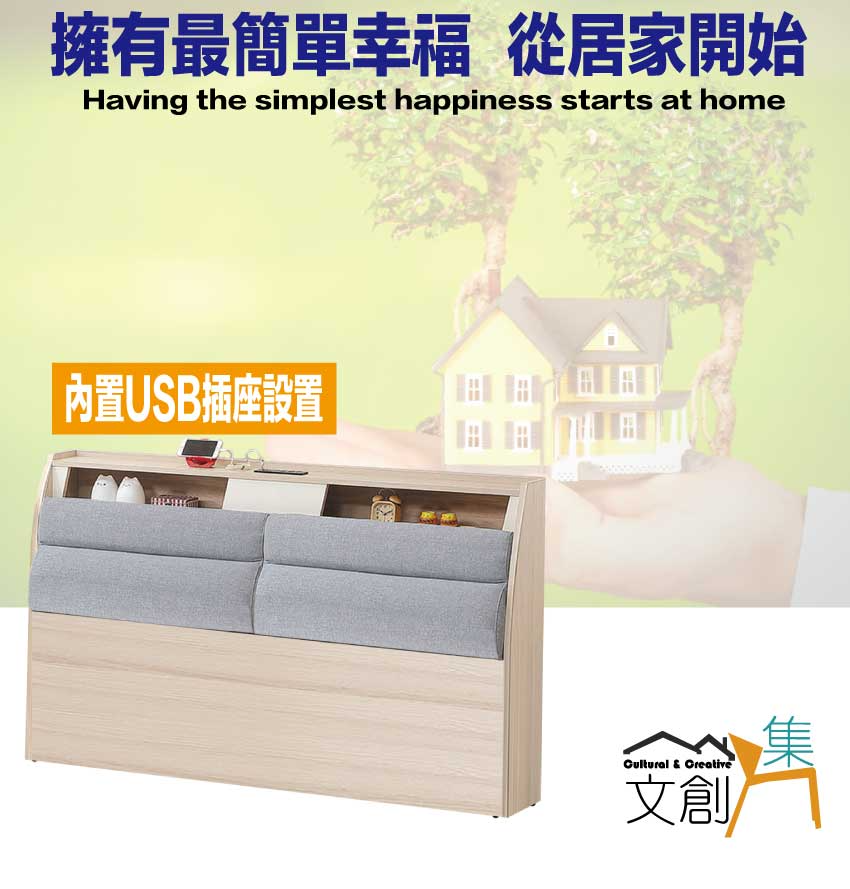 搭配床頭可掀式床枕板+內&外開放層格+便利插座設置等收納空間設計