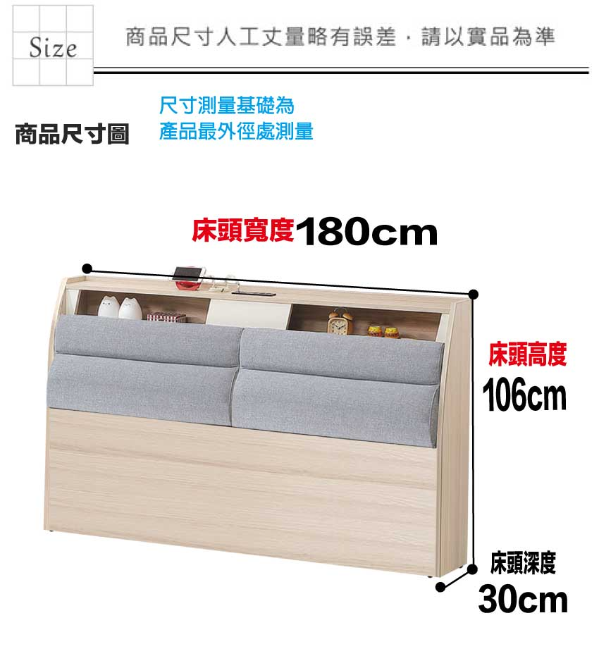床頭尺寸:(寬)180x(深)30x(高)106/公分