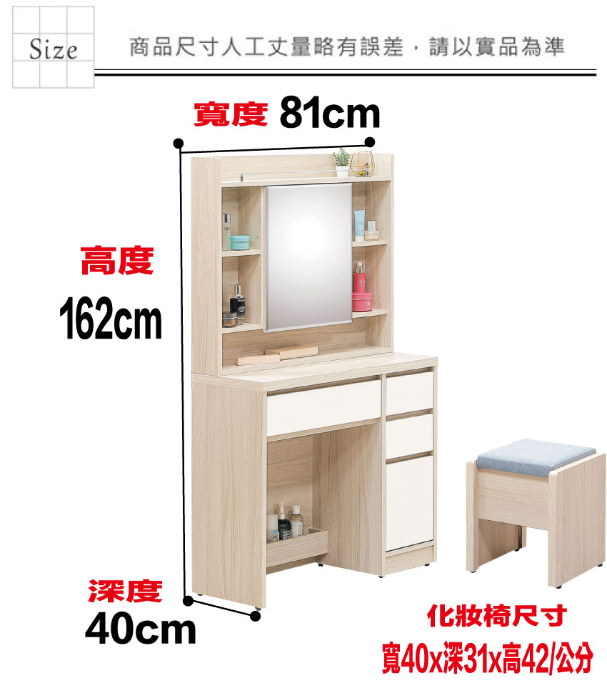 鏡台搭配可掀蓋收納化妝椅凳,滿足您居家空間使用便利性