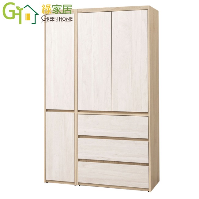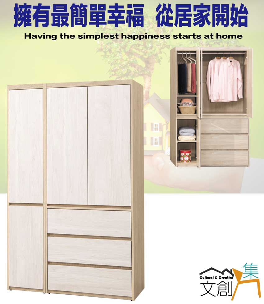 - ◆產品名稱:【綠家居】雷克利4尺四門三抽雙色衣櫃