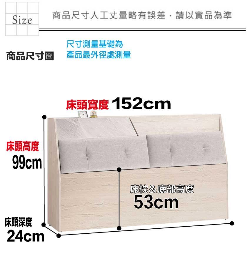 床頭尺寸:(寬)152x(深)24x(高)99/公分