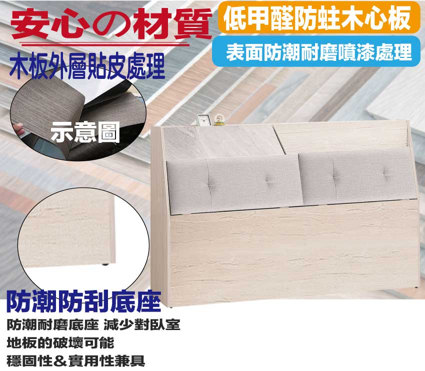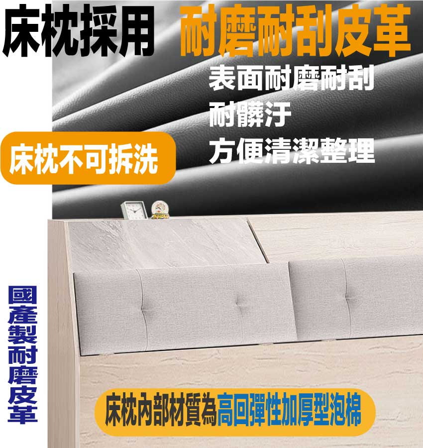 材質:防蛀木心板+防潮耐磨底座+耐磨耐刮皮革+高彈力泡棉+仿石紋耐磨美耐皿面板