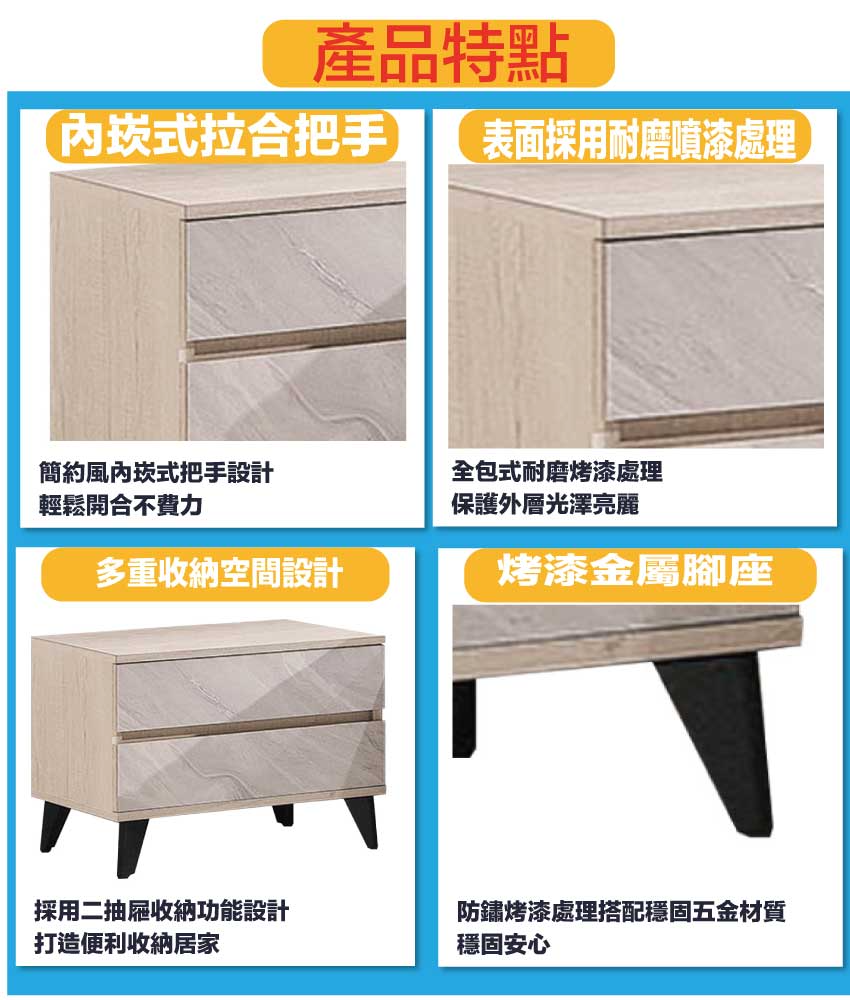 - ◆產品名稱:【綠家居】艾泰雙色1.6尺二抽床頭櫃