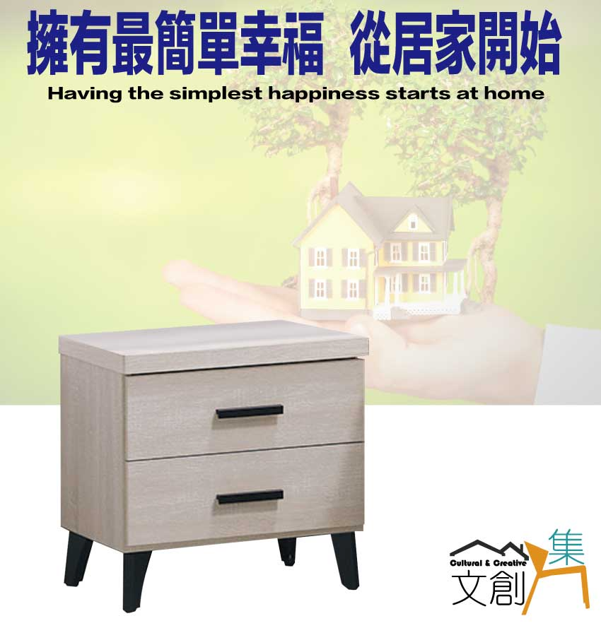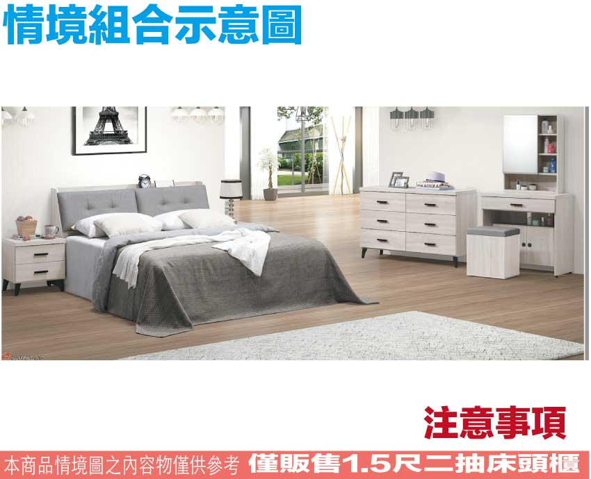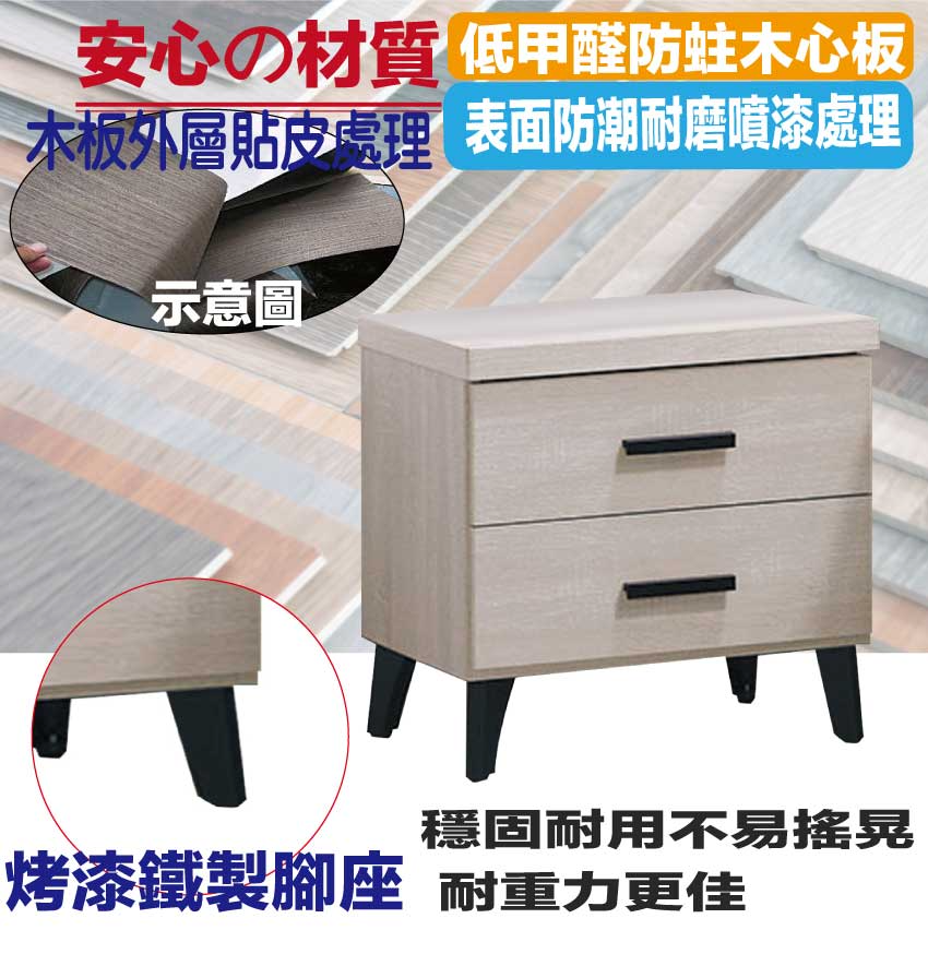 - ◆產品名稱:【綠家居】艾曼淺橡1.5尺二抽床頭櫃