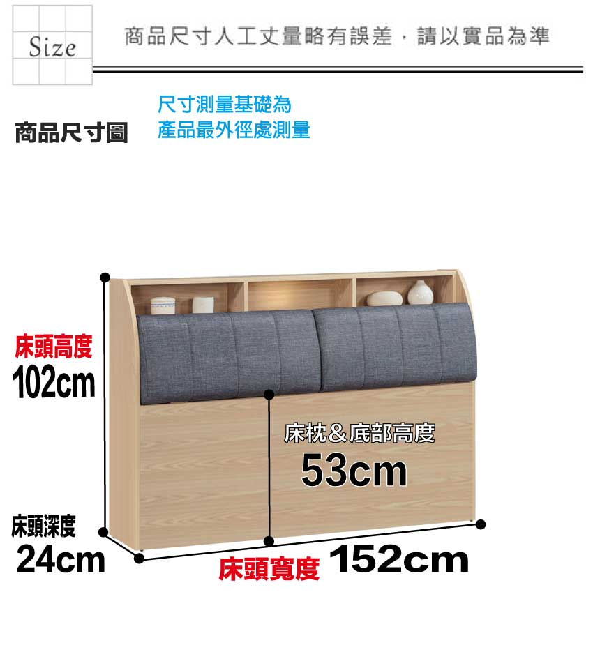 床頭尺寸:(寬)152x(深)24x(高)102/公分