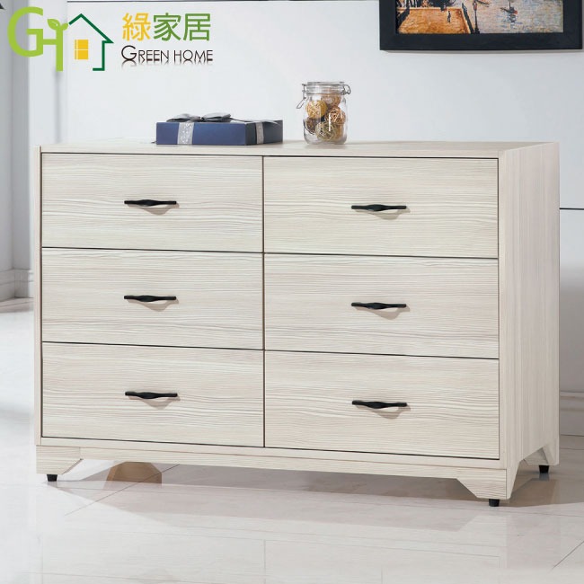 【綠家居】美尼利4尺六抽斗櫃 淺橡木紋色系+安心材質製造,使用放心+搭配居家更便利,採用防蛀木心板+五金滑軌結構+防潮耐磨底座等安心材質製造 ,外層採用防潮耐磨噴漆處理搭配採用六抽屜+開放桌面等收納空間設計,全由專人配送到家,專業安心服務,替你省下更多時間!