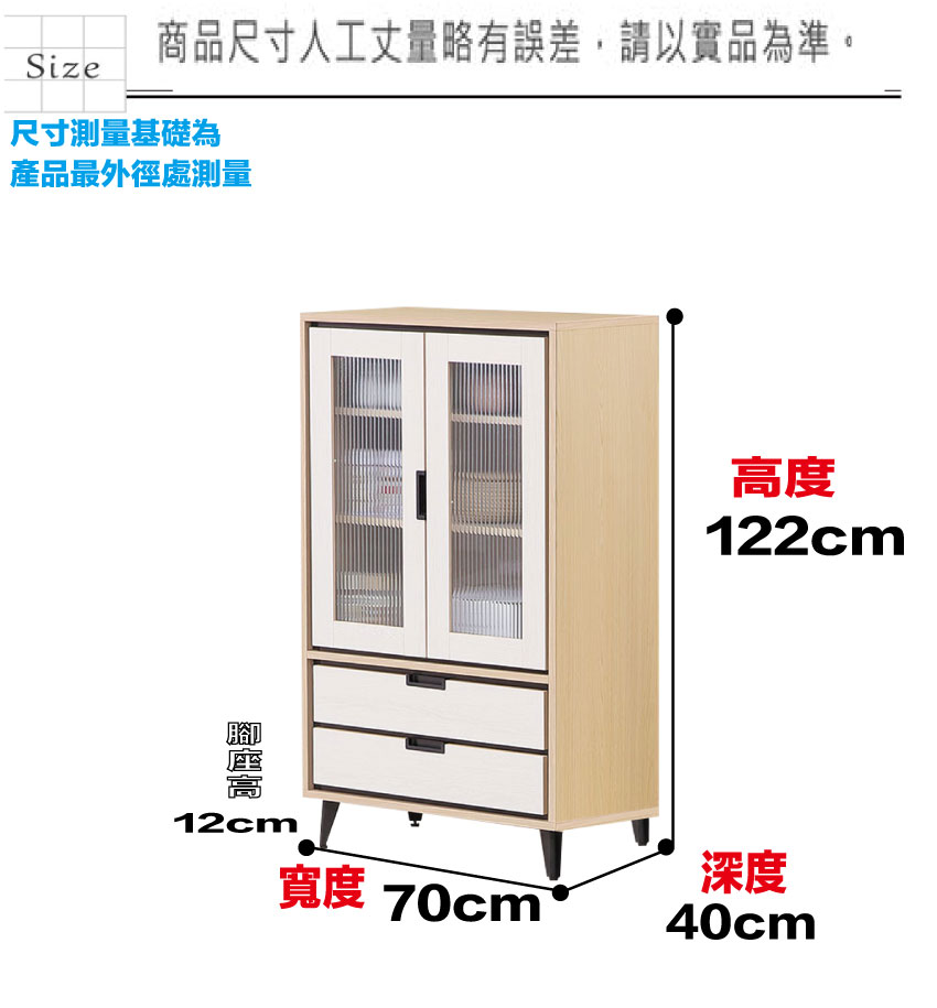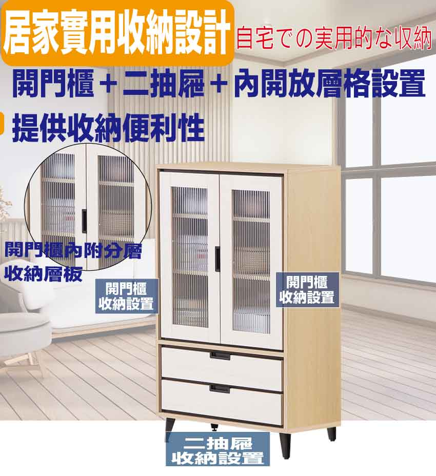 - ◆產品名稱:【綠家居】亞卡利雙色2.3尺二門二抽低展示櫃