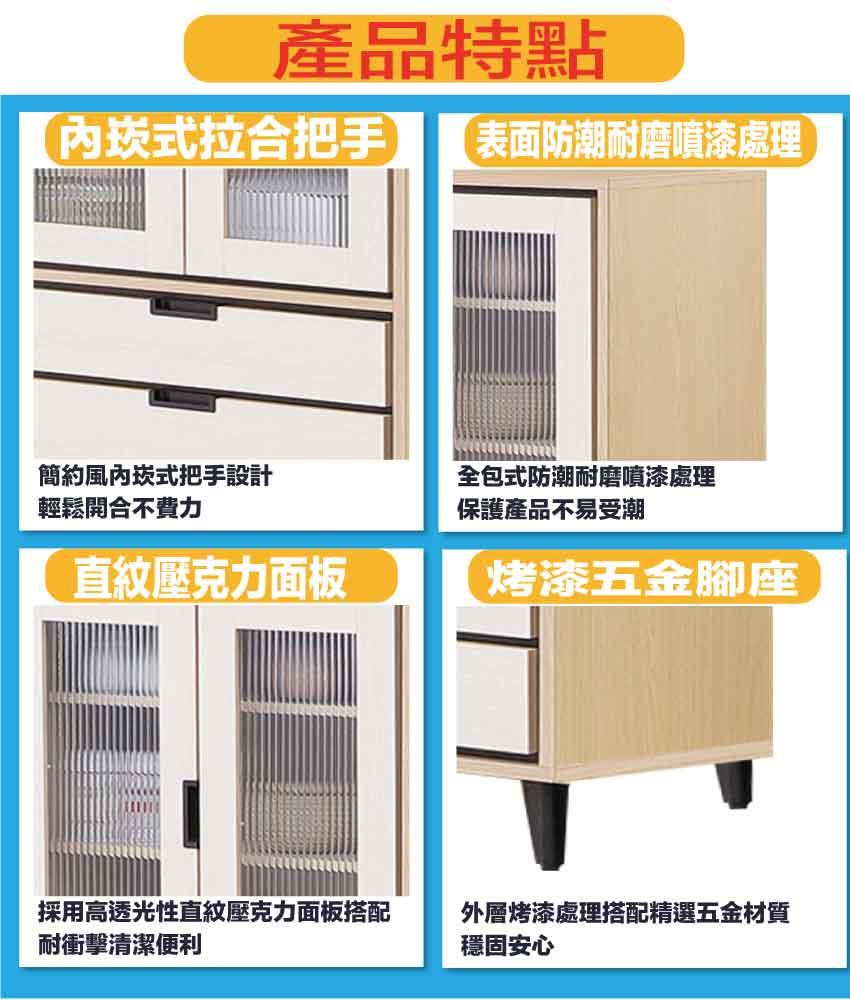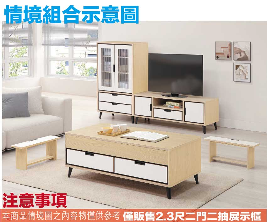 【綠家居】亞卡利雙色2.3尺二門二抽低展示櫃 木紋雙色系+安心材質製造,使用放心+搭配居家更便利,採用防蛀木心板+五金滑軌結構防夾手緩衝門片五金+烤漆五金腳座等安心材質製造 ,外層採用防潮耐磨噴漆處理搭配採用開門櫃+二抽屜+內開放層格等收納空間設計,全由專人配送到家,專業安心服務,替你省下更多時間!