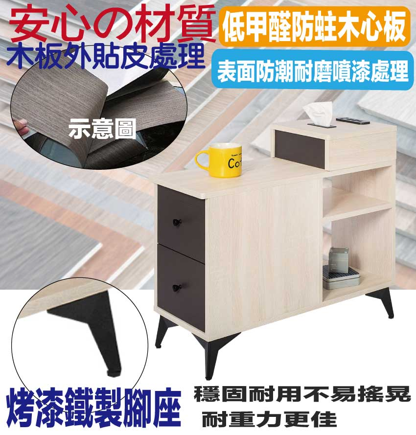 採用防蛀木心板+五金滑軌結構+烤漆五金腳座等安心材質製造