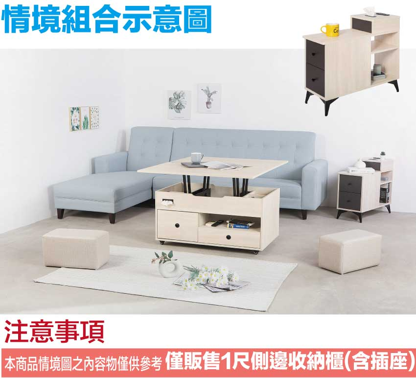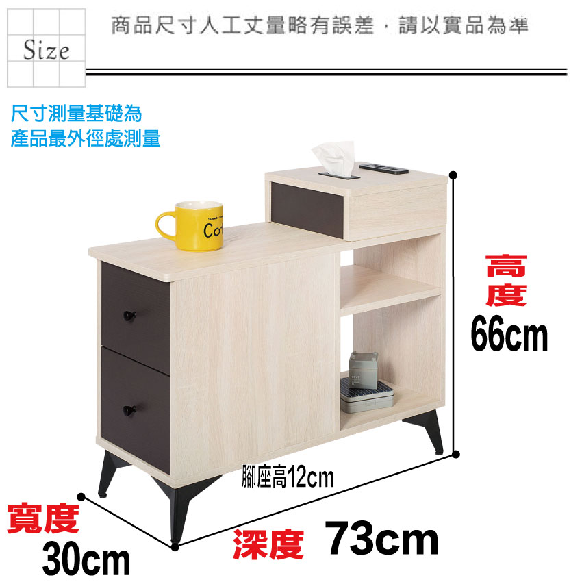 - ◆產品名稱:【綠家居】米雅雙色1尺二抽邊櫃