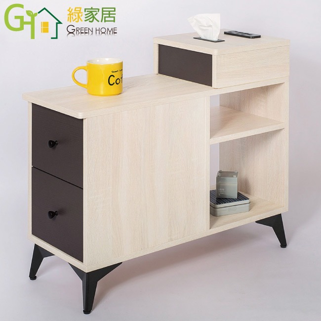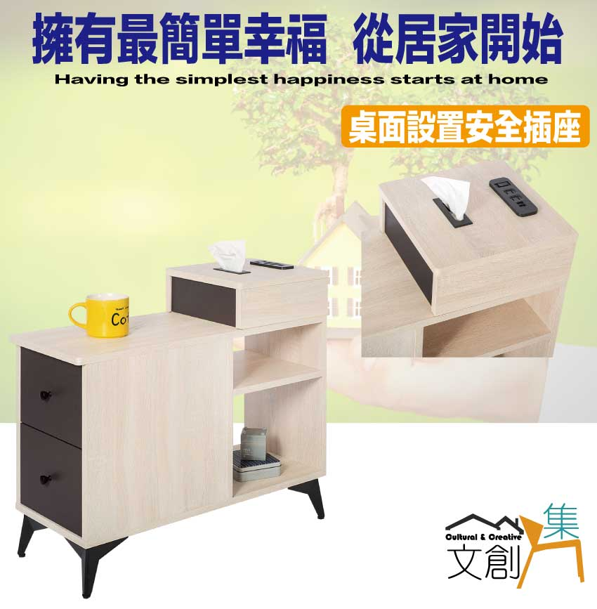 【綠家居】米雅雙色1尺二抽邊櫃 木紋雙色系+安心材質製造,使用放心+搭配居家更便利,採用防蛀木心板+五金滑軌結構+烤漆五金腳座等安心材質製造 ,外層採用防潮耐磨噴漆處理搭配採用二抽屜+便利插座+開放層格等收納空間設計,全由專人配送到家,專業安心服務,替你省下更多時間!