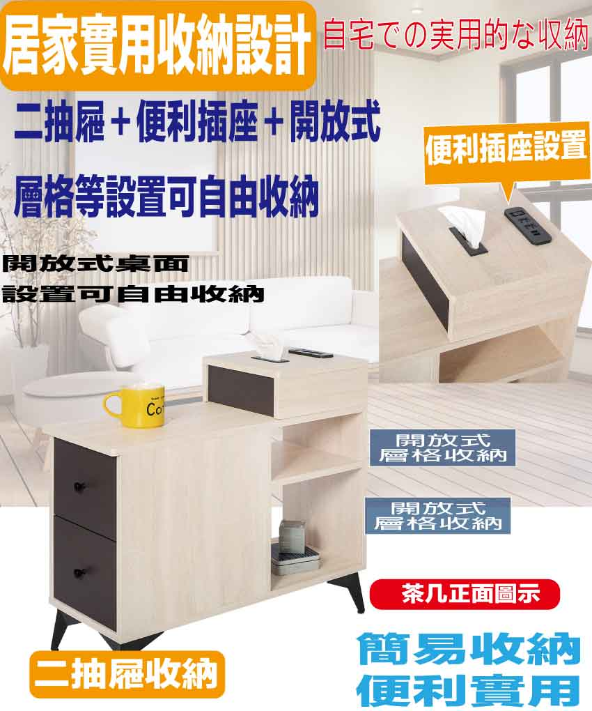 搭配採用二抽屜+便利插座+開放層格等收納空間設計