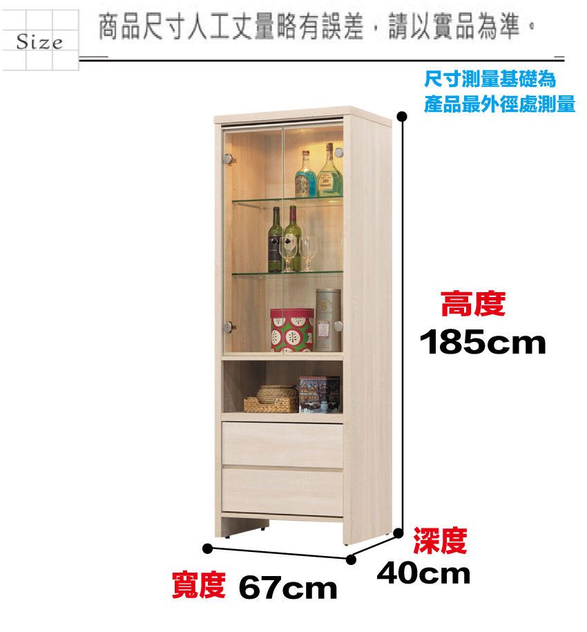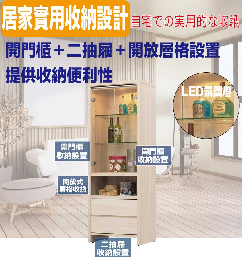 - ◆產品名稱:【綠家居】美尼利2.2尺二門二抽展示櫃(內置LED氛圍燈)