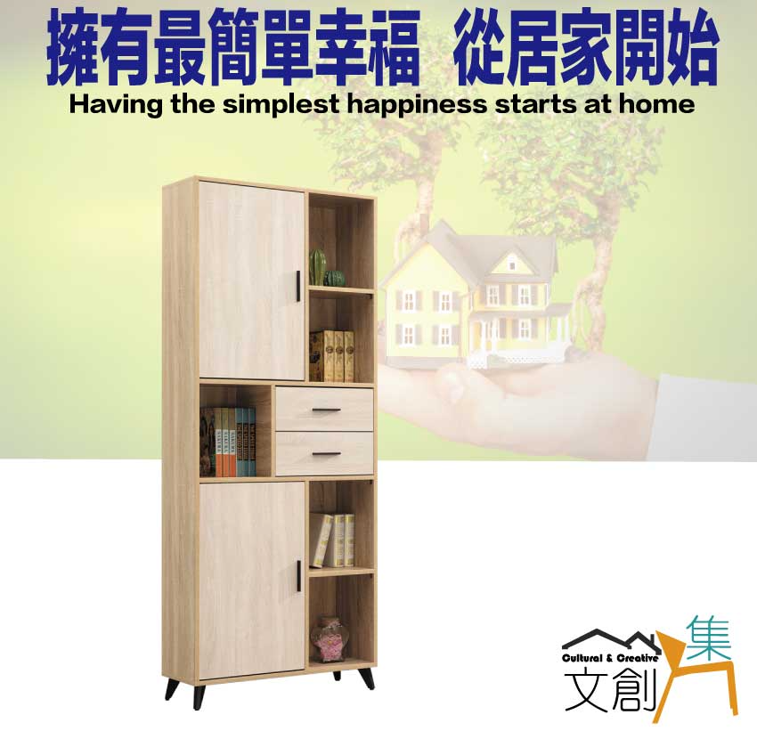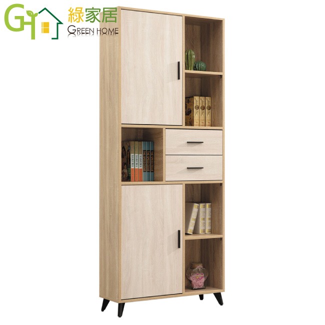 【綠家居】加利雙色2.7尺二門二抽書櫃 木紋雙色系+安心材質製造,使用放心+搭配居家更便利,採用防蛀木心板+五金滑軌結構+烤漆五金腳座等安心材質製造 ,外層採用防潮耐磨噴漆處理搭配採用開門櫃+二抽屜+開放層格等收納空間設計,全由專人配送到家,專業安心服務,替你省下更多時間!