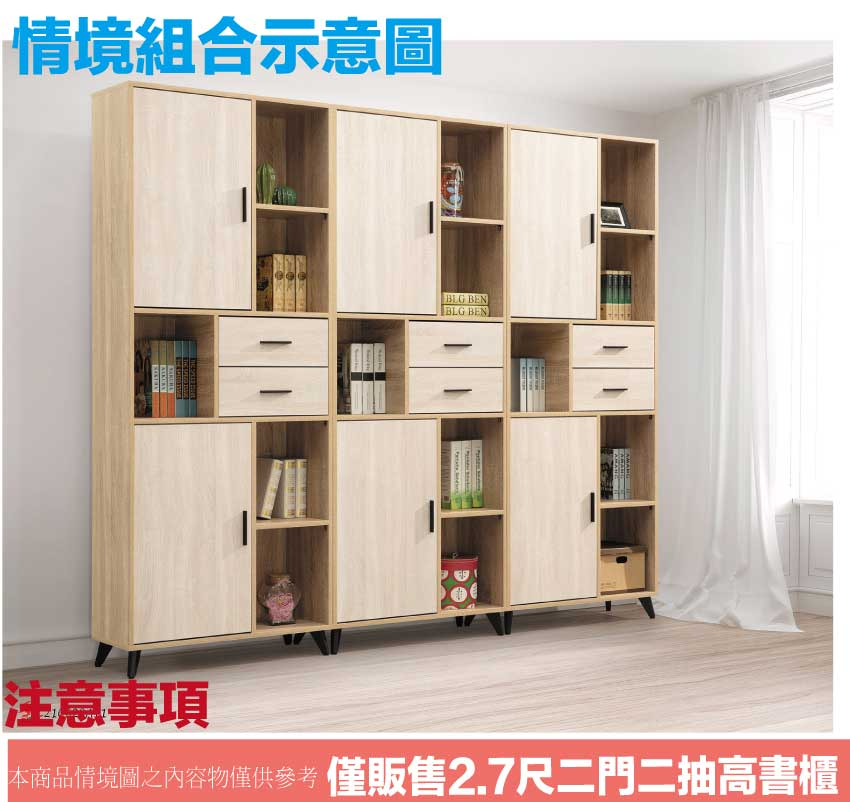 - ◆產品名稱:【綠家居】加利雙色2.7尺二門二抽書櫃
